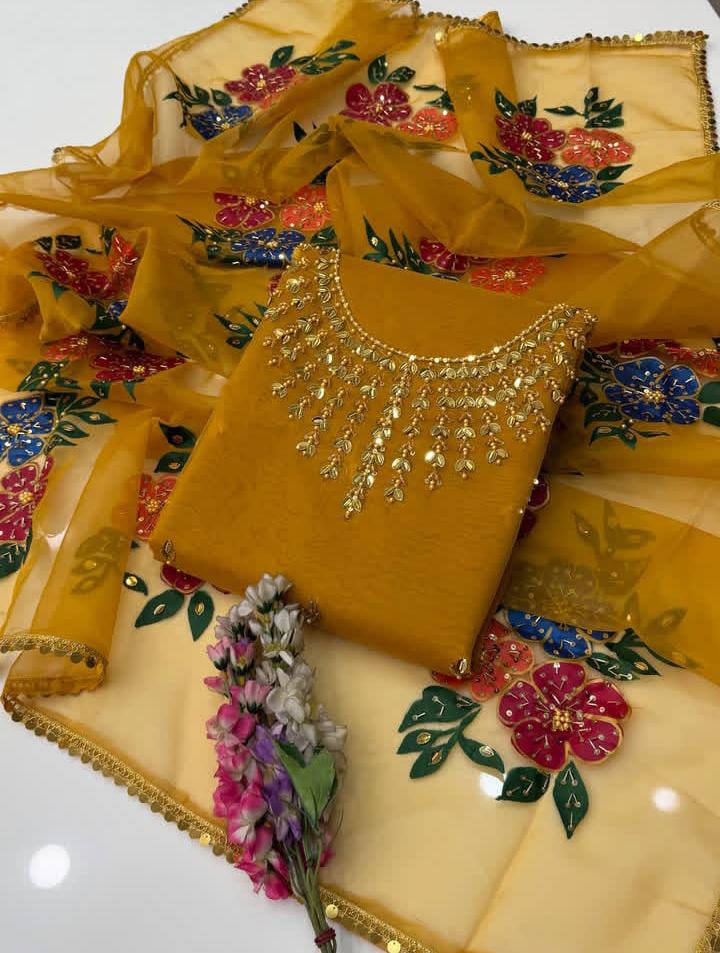 ✅ Shirt: Crafted from premium organza, adorned with stunning handwork – delicate stones and beads add a luxurious sparkle and elegance.