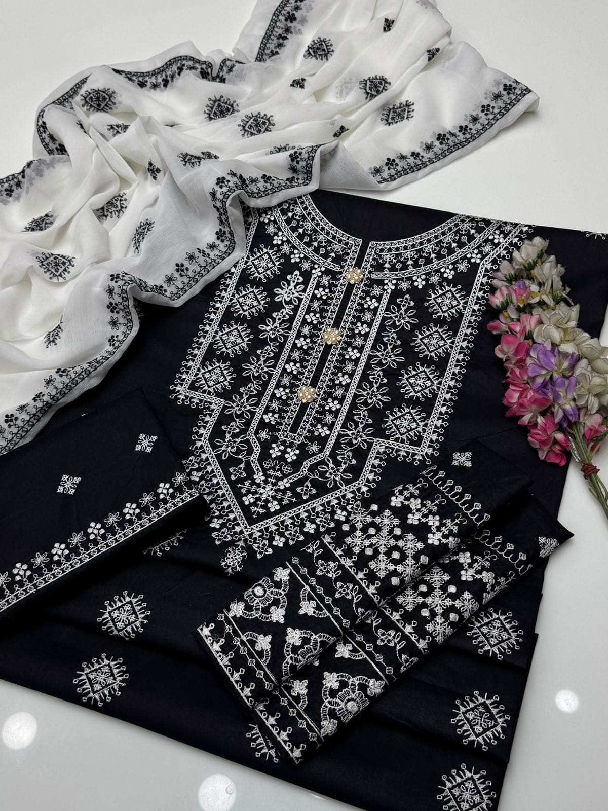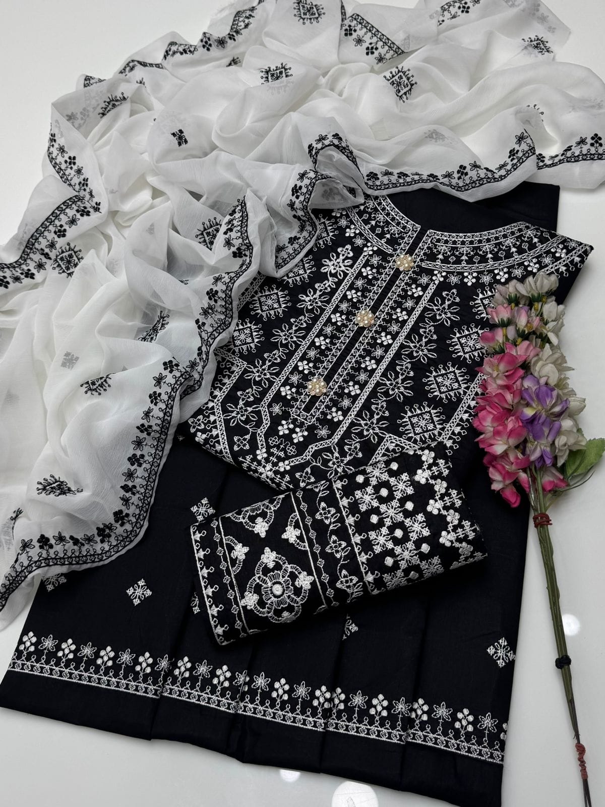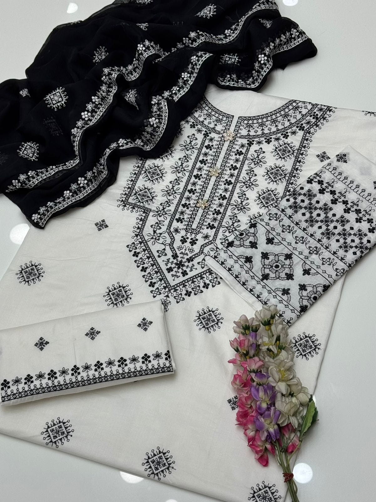 Turn heads this season with our stunning 3-piece embroidered ensemble, designed to combine classic charm with handcrafted finesse.