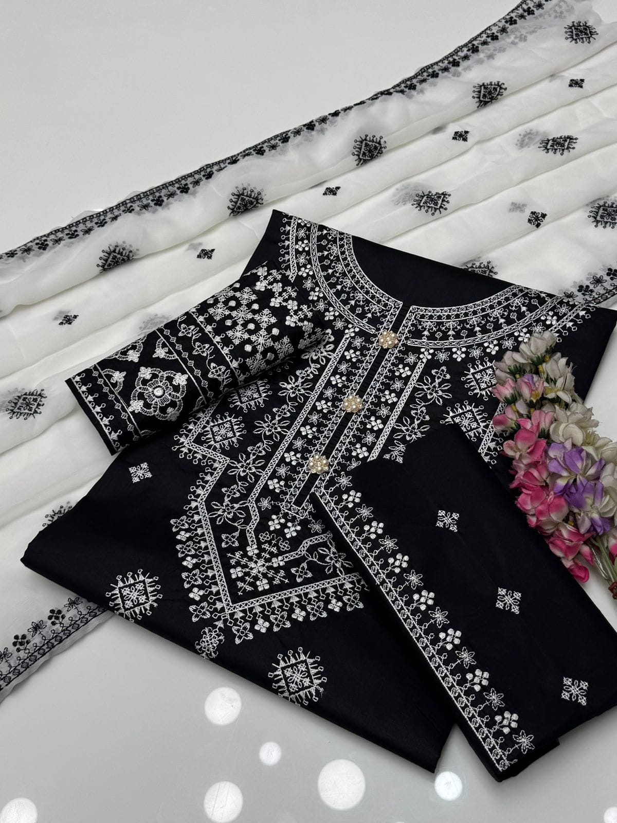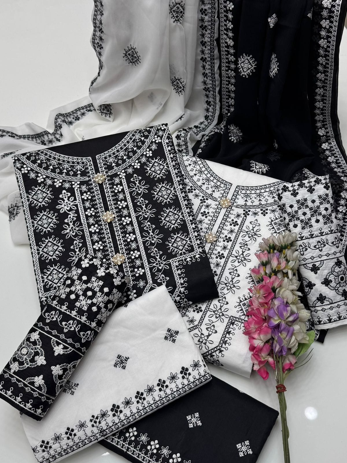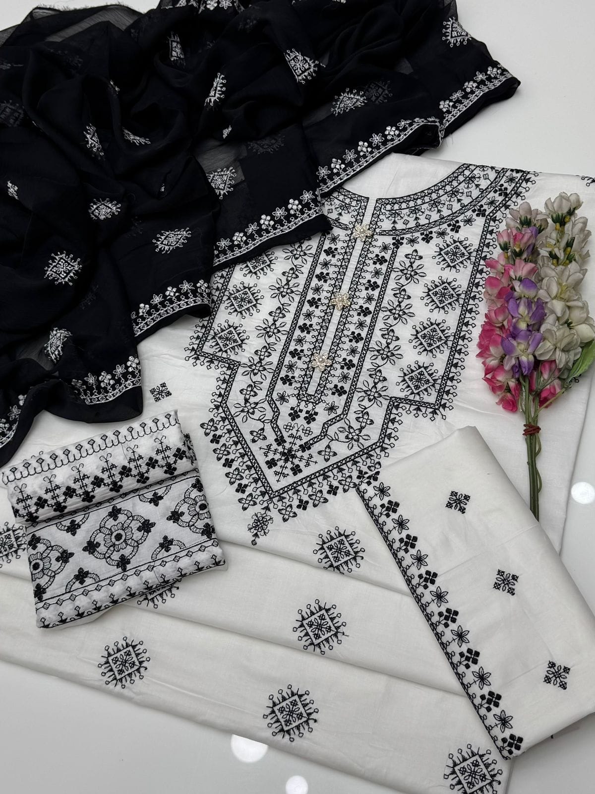 Turn heads this season with our stunning 3-piece embroidered ensemble, designed to combine classic charm with handcrafted finesse.